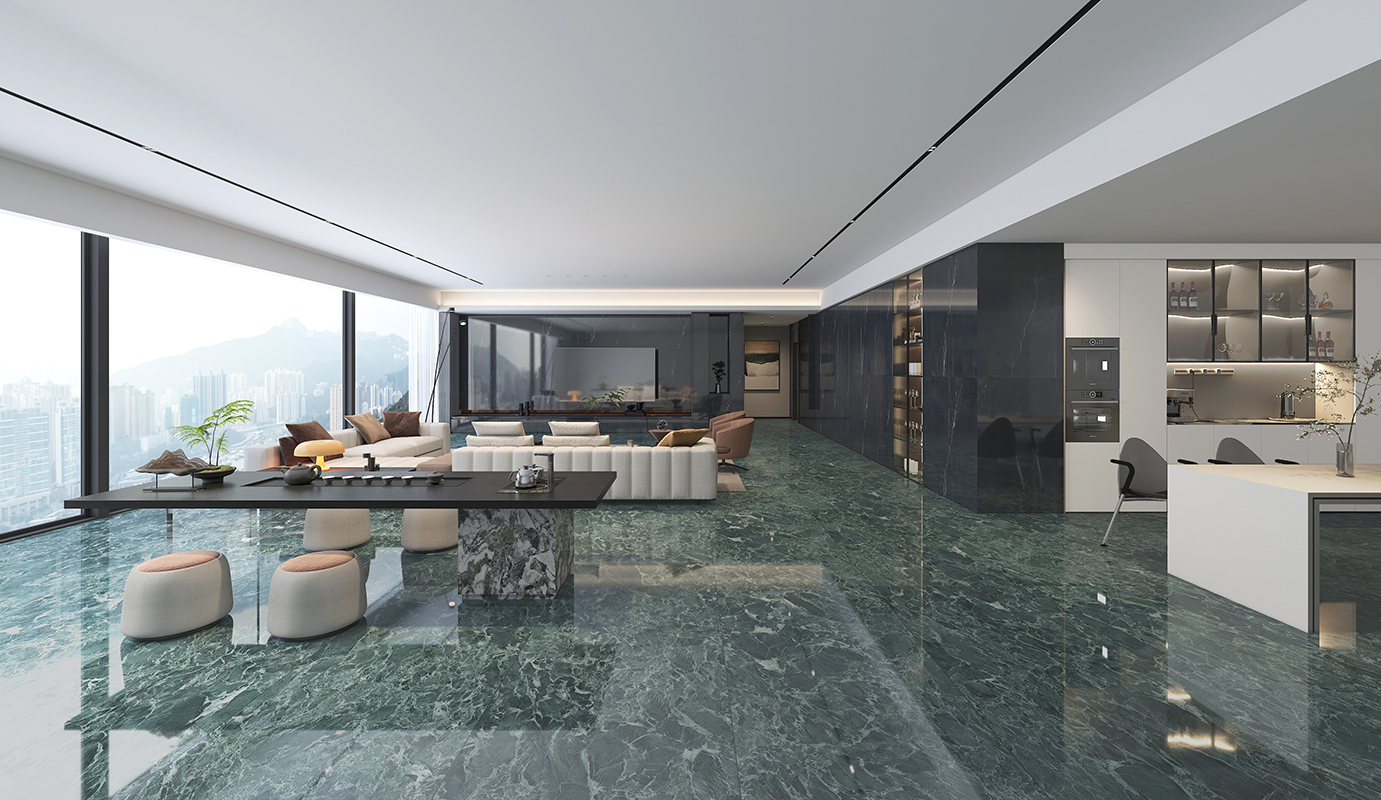 灵感源自意大利高级石材——普拉达绿 以50°超白底坯+ai复刻+高透釉多重工艺复刻还原奢石之美